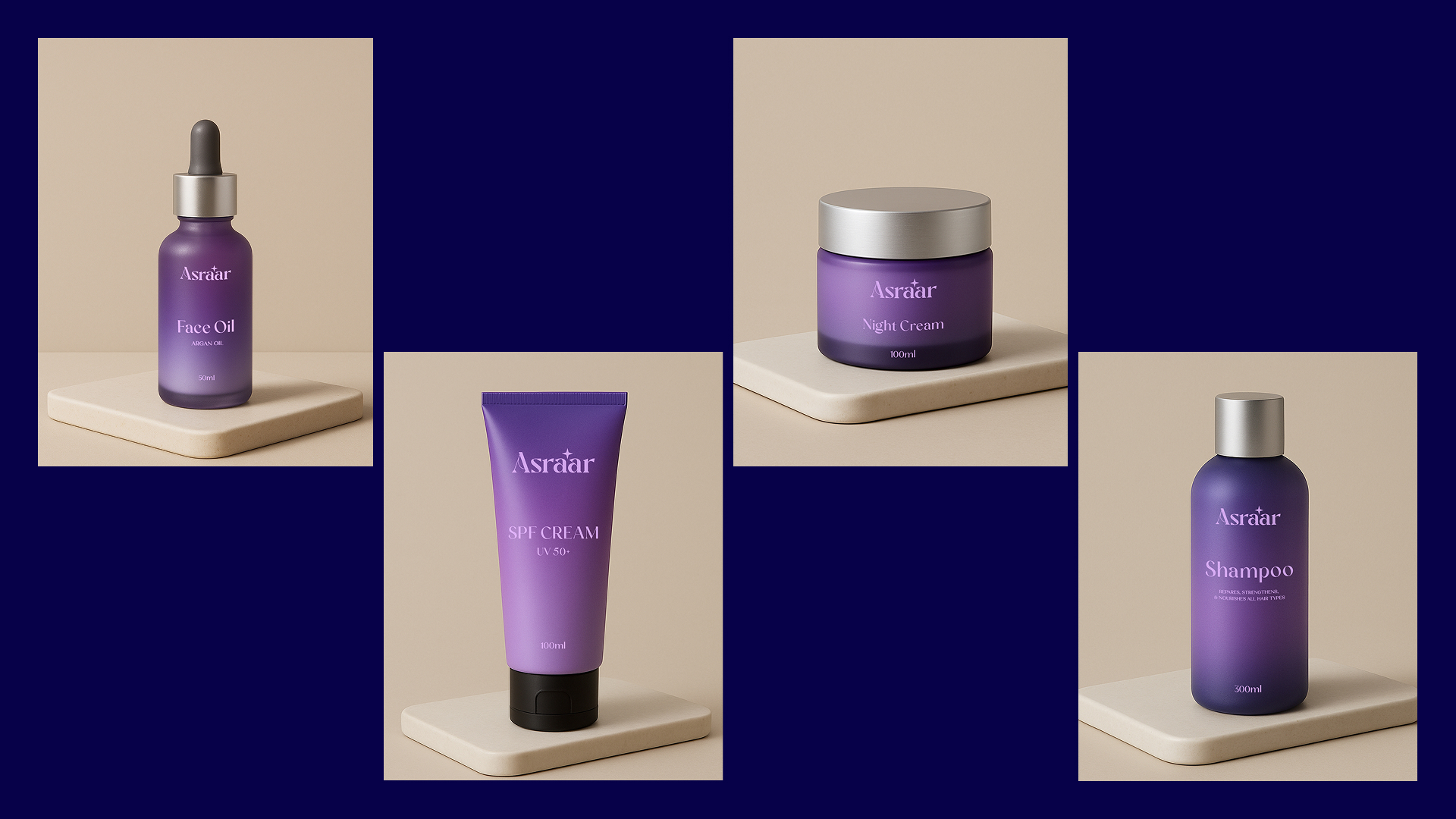 We began with market research to define a clear direction and differentiation within a highly competitive beauty industry. Through extensive exploration of fonts, logos, and visual styles, we refined the concept until it perfectly reflected the brand’s essence — a balance of mystery, serenity, and elegance. Inspired by the meaning of Asraar (“mysteries”), we built a visual identity rooted in the calm allure of the night sky. We developed a unified style that is easy to apply yet deeply symbolic. The project included a full visual system — from custom icons and stickers for each service to a website redesign, interior concept, and social media templates — creating a cohesive, premium experience across all touchpoints.